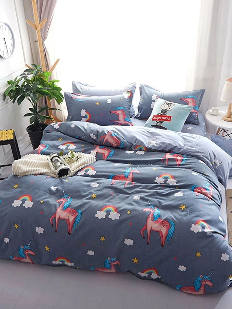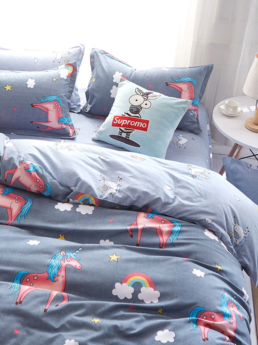 1.8m 4Pcs Animal & Rainbow Print Bedding Set