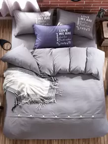 1.8m 4Pcs Letter Print Button Bed Sheet Set