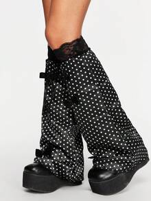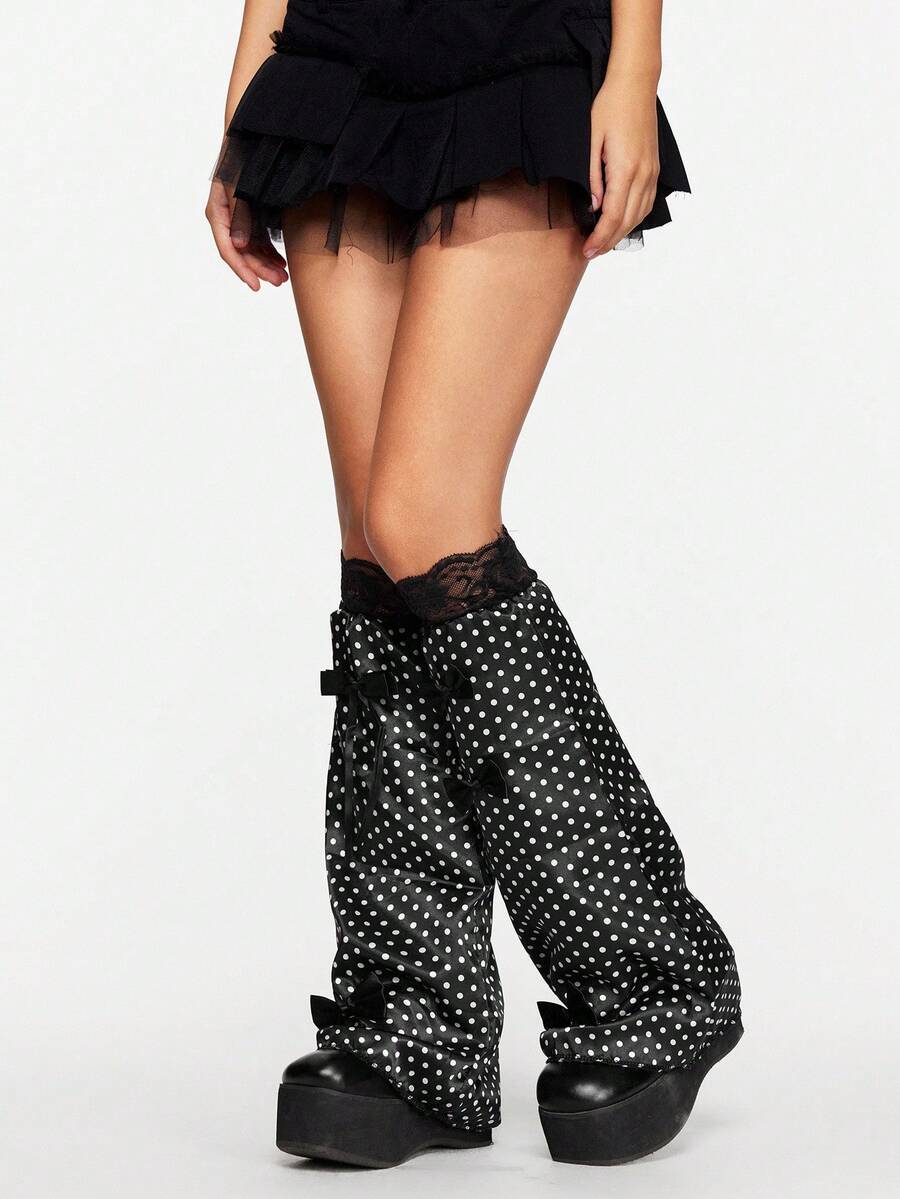 Anime 1 Pair Black Vintage Cute Harajuku Style White Polka Dot Bow Lace Splice Fashion Leg Warmers, Suitable For Daily Outfit, Music Festival, Anime Convention, A Great Fashion Accessory