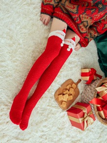 1 Pair Coral Velvet Over-the-knee Christmas Socks