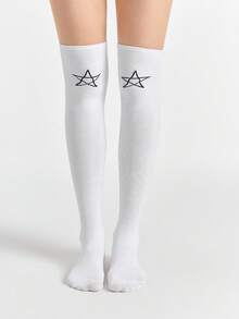 Grunge Punk 1 Pair Dark Rock Star Design Solid Color Knee-High Socks