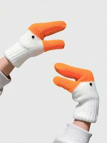 Kawaii 1 Pair Funny Goose Knitted Fingerless Gloves