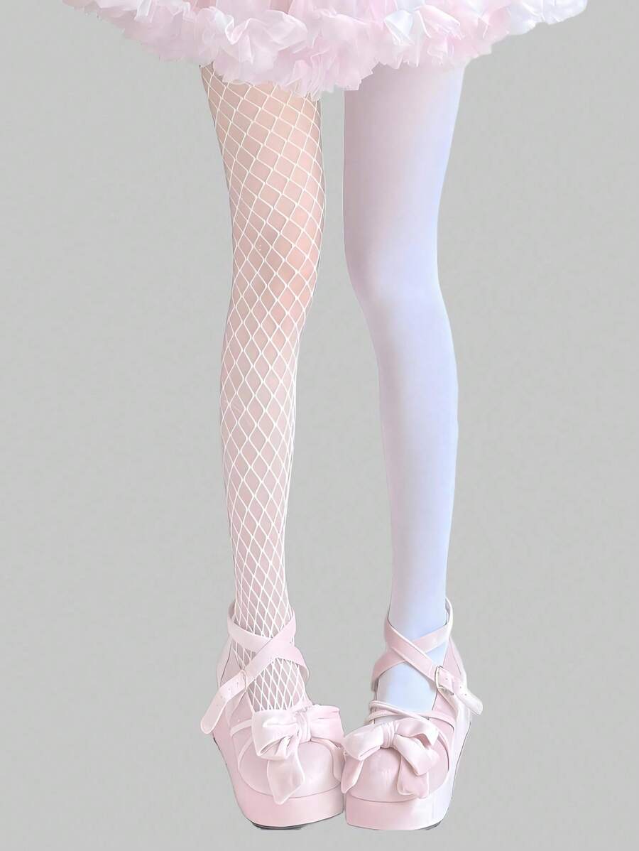 Kawaii 1 Pair Sexy Vixen AB Type Fishnet Stockings, Y2K Minimalist Style Solid White Pantyhose, High Quality Non-Snagging Stirrup Tights, Ultra-Thin Elastic Sheer Leggings