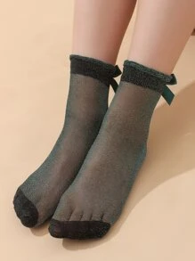 1 Pair Women Gold Butterfly Decorative Ankle Socks, Fashion & Sexy, Suitable For Everyday Wear