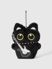Kawaii 1pc Black Retro Punk Style Plush Guitar Necklace, Black Cat Multifunctional Accessory Clip - Keychain, Bag Charm, Can Be Hung On Bags, Pants, Suitable For Daily, Campus, Shopping, Dating, Etc.