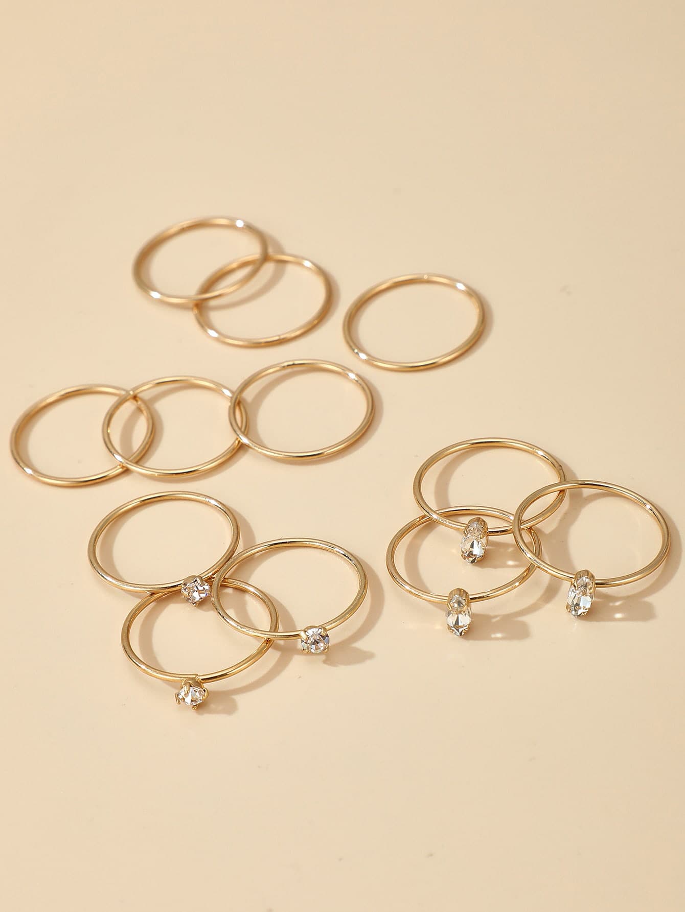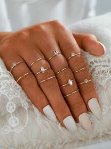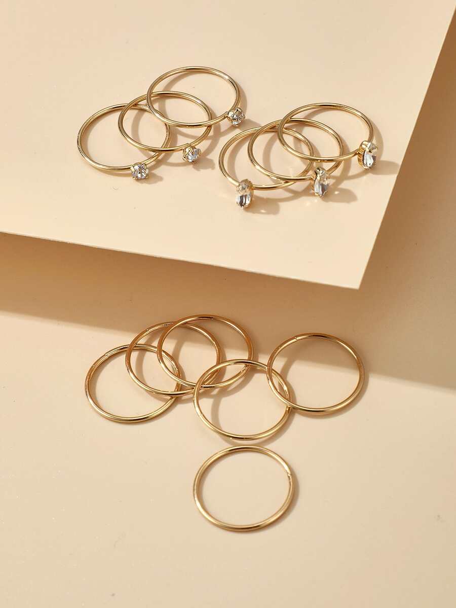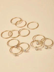 12pcs Simple Rhinestone Ring