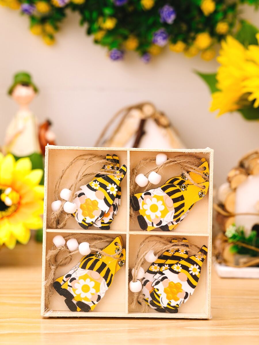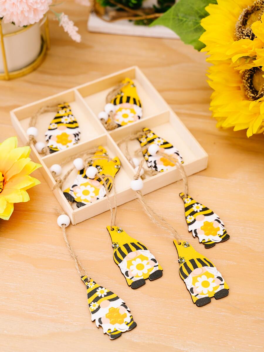 12pcs/set WPC Wall Hanging, Cartoon Gnome Design Flower Pattern Hanging Decoration For Home
