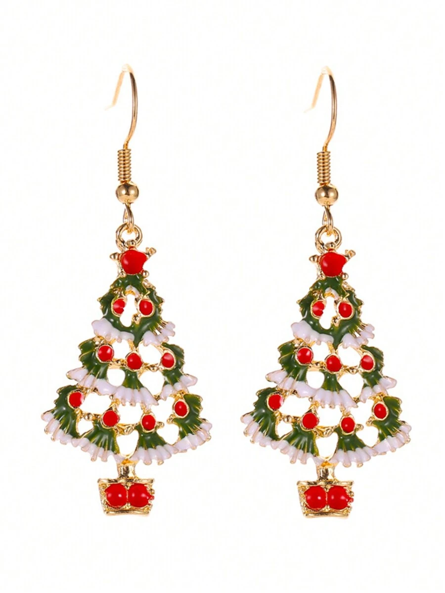 Kawaii 1pair Christmas Tree Shaped Earrings