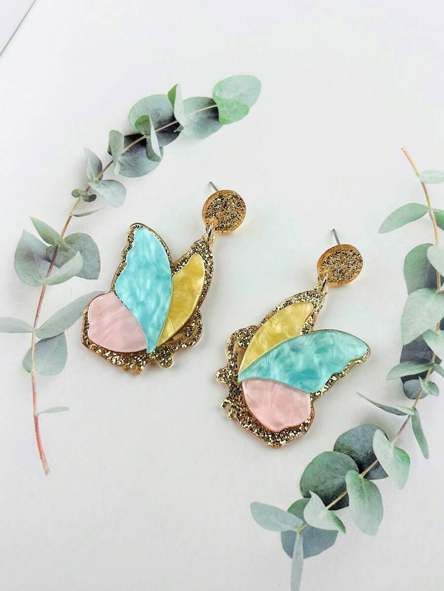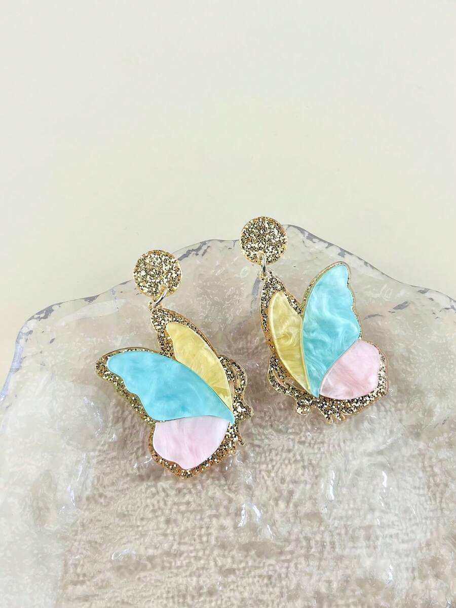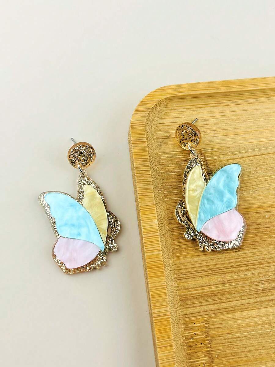 1pair Cute Acrylic Butterfly Drop Earrings For Women For Daily Decoration