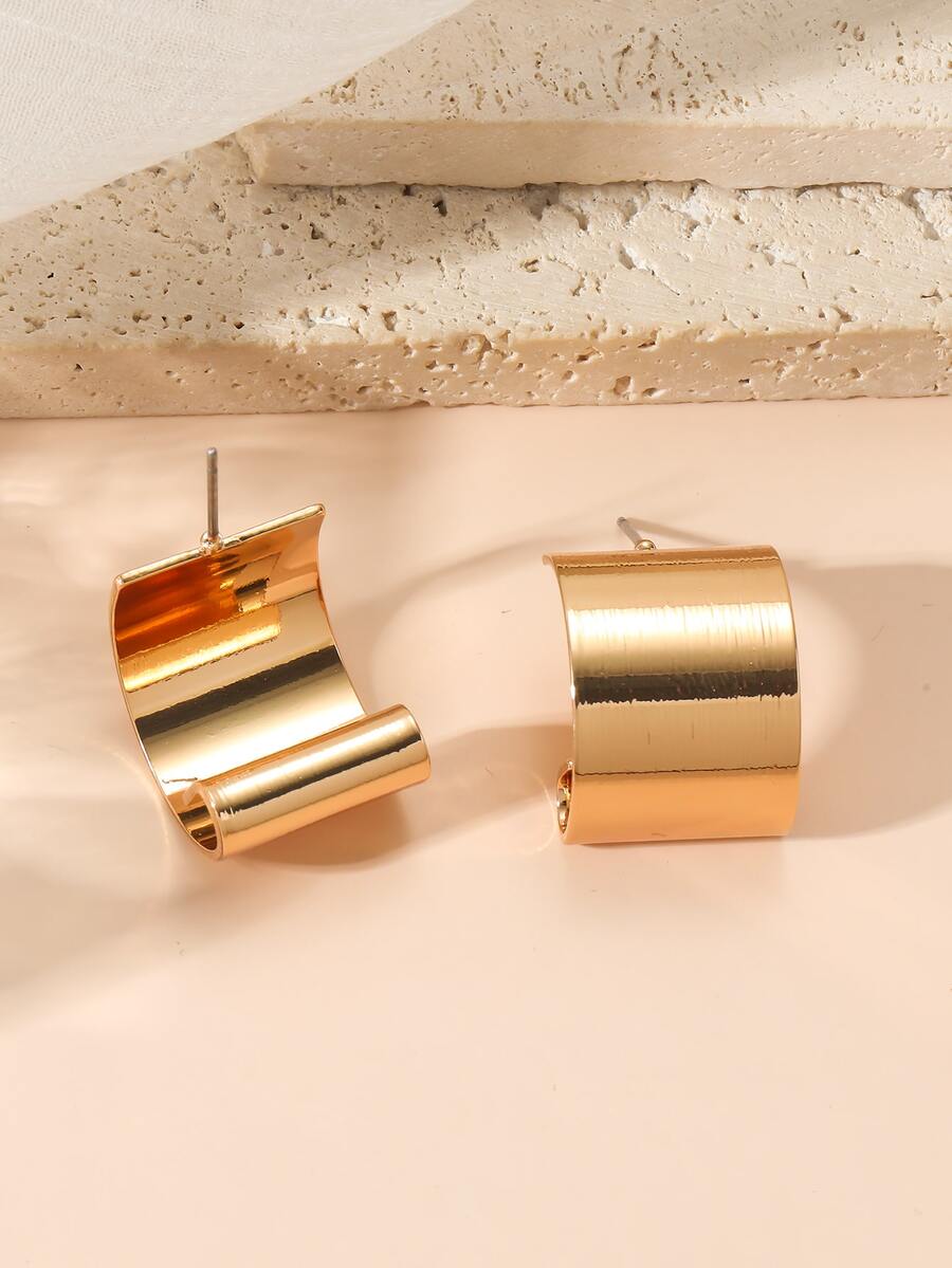 1pair Fashionable Zinc Alloy Textured Cuff Hoop Earrings For Women For Daily Decoration