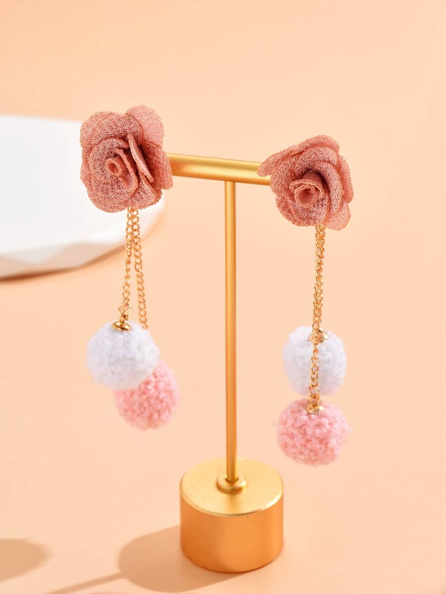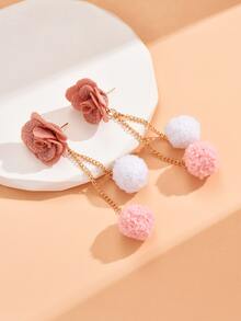1pair Flower & Ball Dangle Earrings