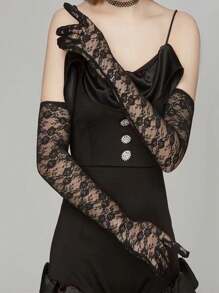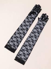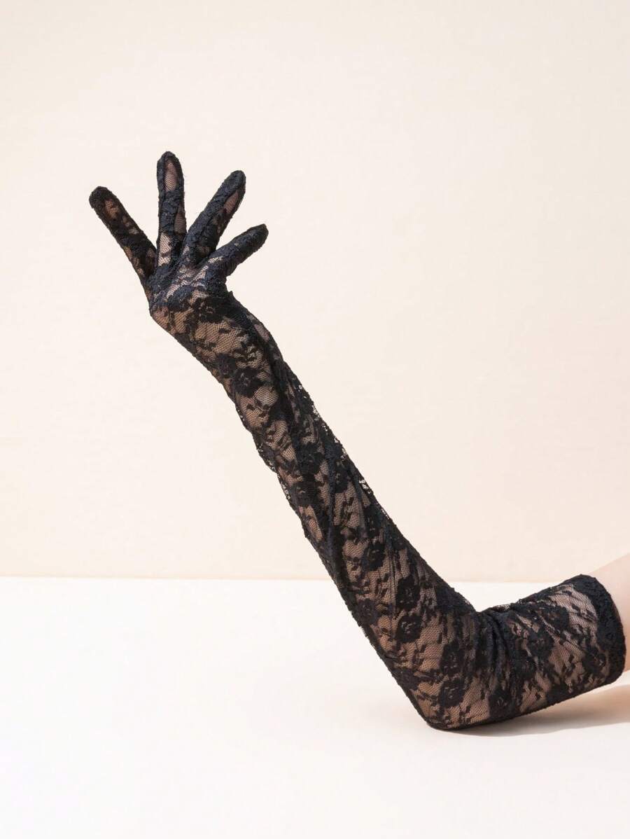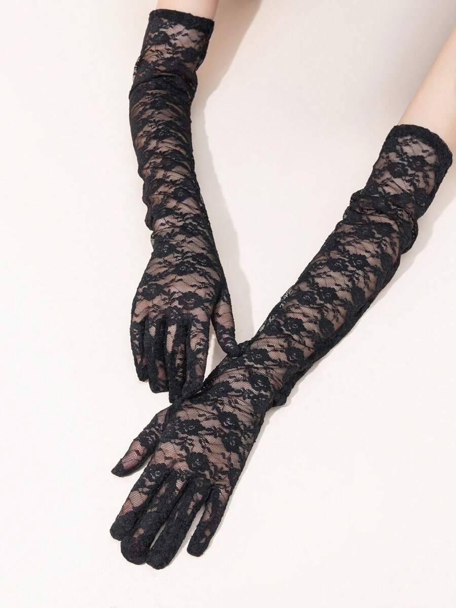 1pair Ladies' Floral Lace Long Evening Party Gloves Suitable For Daily Use