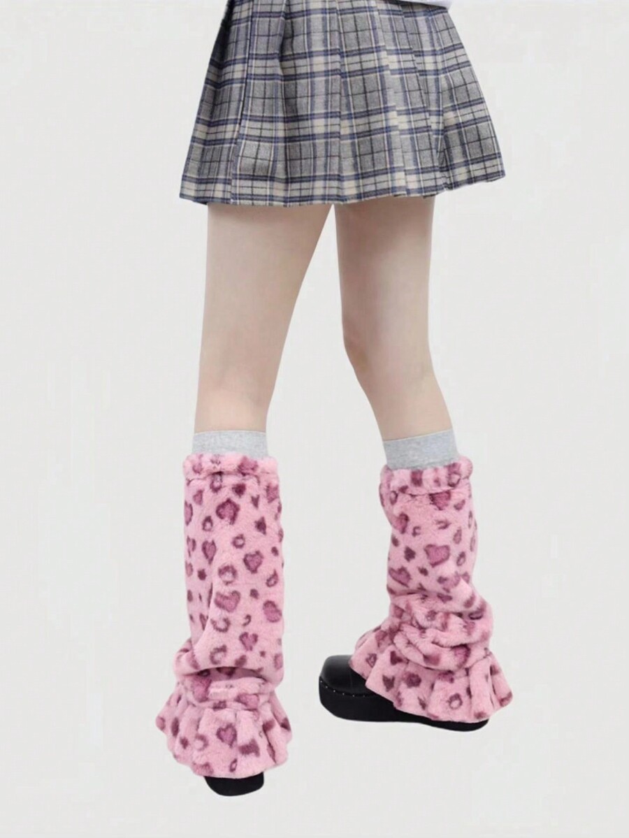 Kawaii 1pair Pink Leopard Print Warm Leg Warmers For Fashionable Women