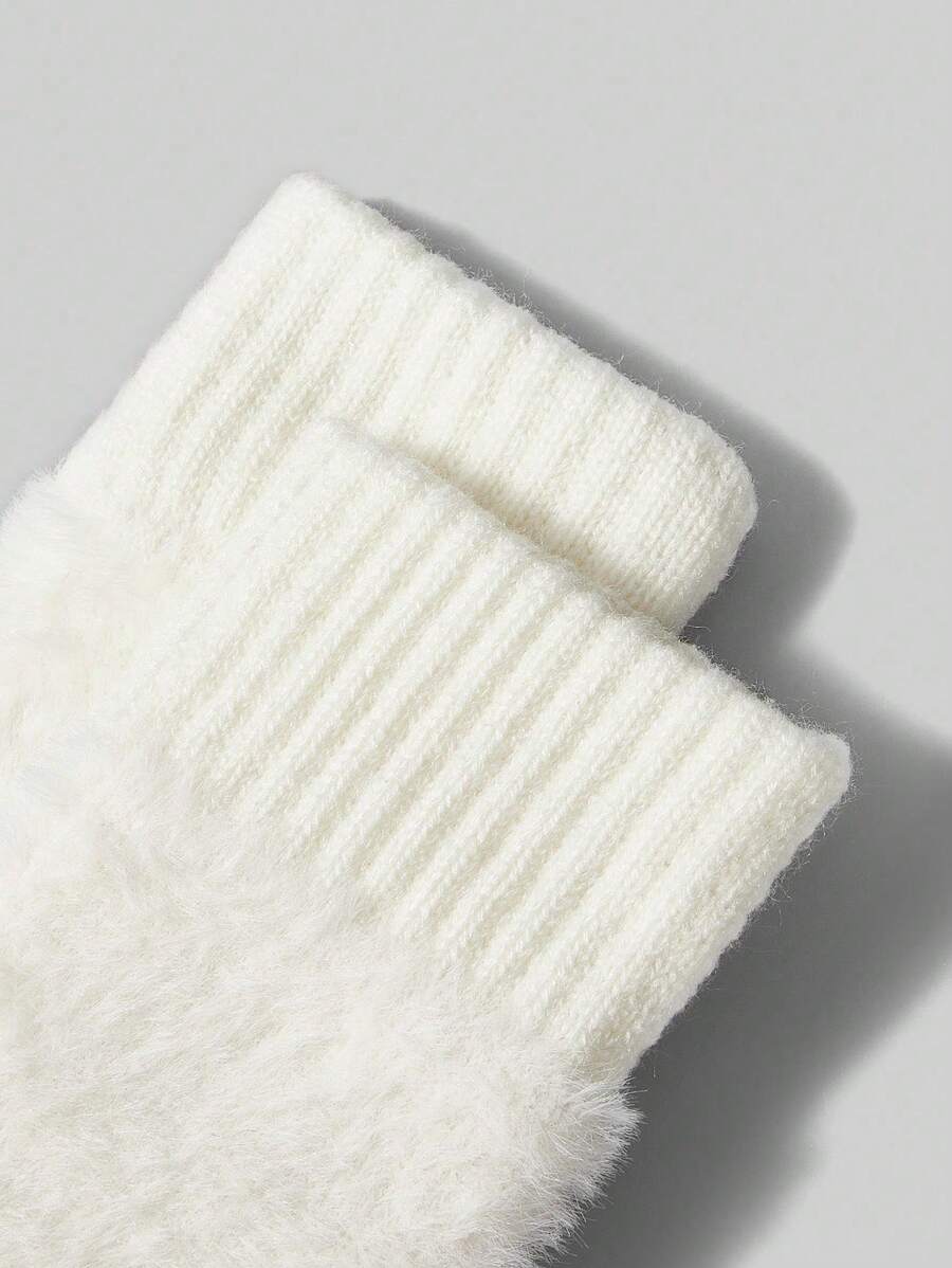 Kawaii 1pair Solid Color Warm Plush Gloves For Autumn/Winter