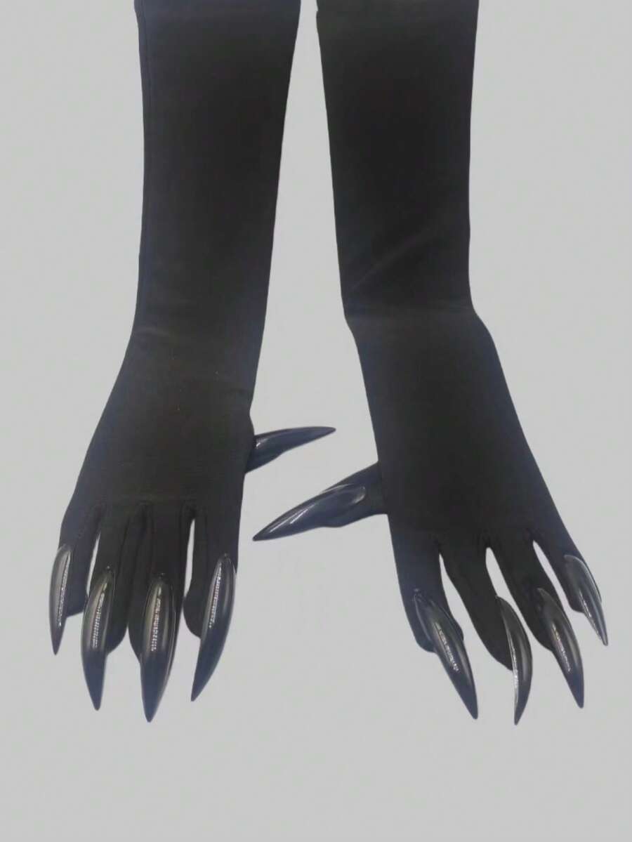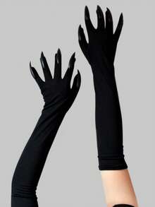Goth 1pair Women Plain Long Nail Costume Gloves