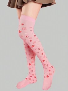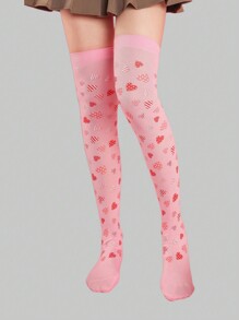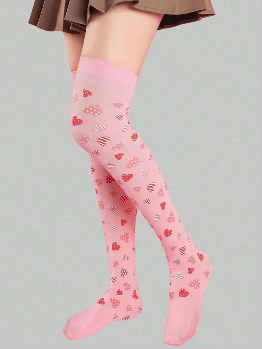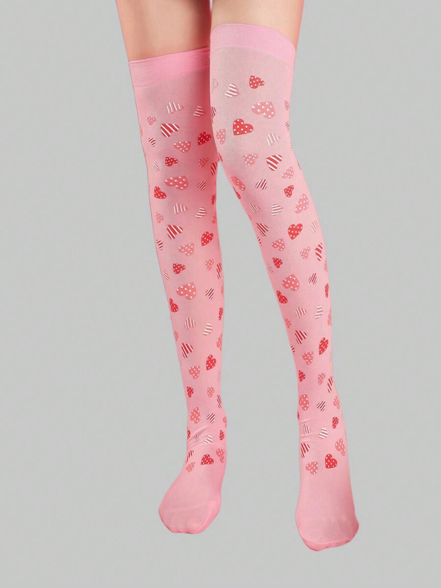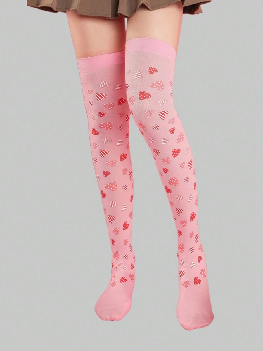 1pair Women's Seasonal Pink Heart Pattern Over-Knee Socks