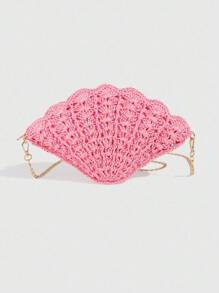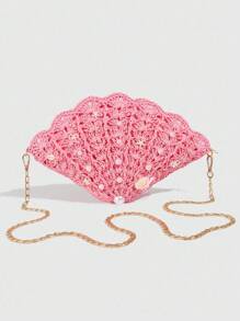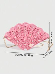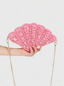 Fairycore 1pc Adorable Tropical Beach Style Crochet Shoulder Bag, Pearl Bow Decor Women Holiday Messenger Bag