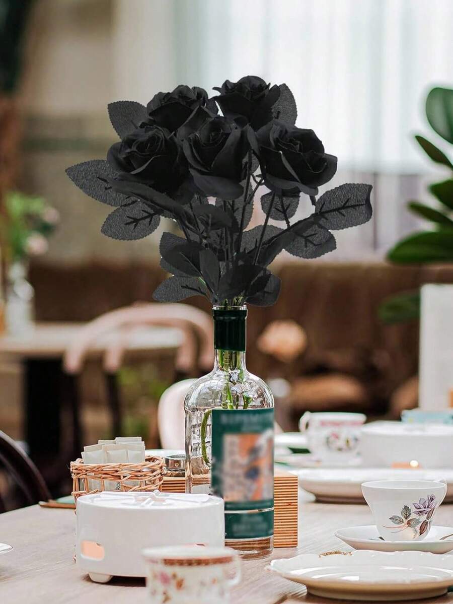 1pc Black Rose Artificial Flowers, Home Decoration, Photo Props,Gothic Black Rose Fake Flower – Artificial Rose For Halloween Decor, Dark Wedding, Witch Party, Haunted House, Vampire Gothic Home Decoration, Spooky Centerpiec