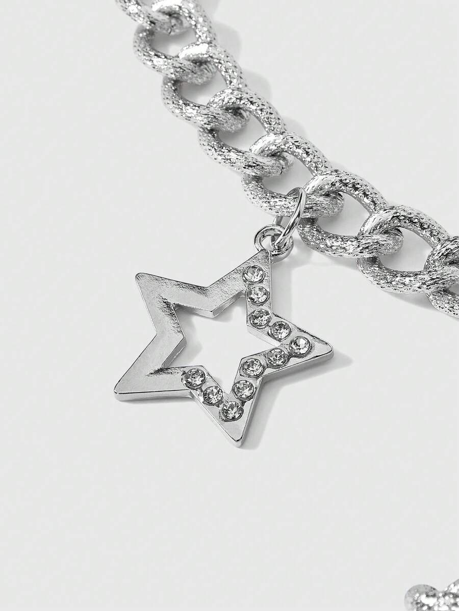 Anime 1pc Black Street Punk Metal Chain Necklace, Adjustable Length Star Tie Design, Fashion Minimalist Unisex Accessory Suitable For Daily Wear, Music Festivals, Campus, Dates, Etc.