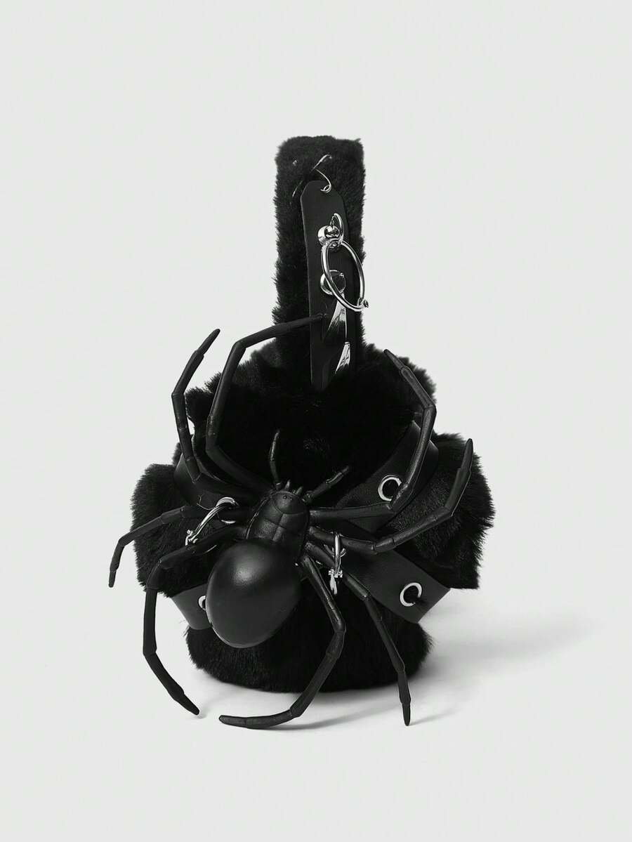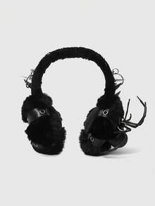 Anime 1pc Black Y2K Punk Style Metal Rivet Decor Millennium Baddie Goth Black Spider Ear Muffs, Sweet & Cool Fashionable Subculture Unisex Warm Ear Warmers