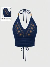Y2K Vintage Halter Neck Vacation Star Embroidery Knit Top