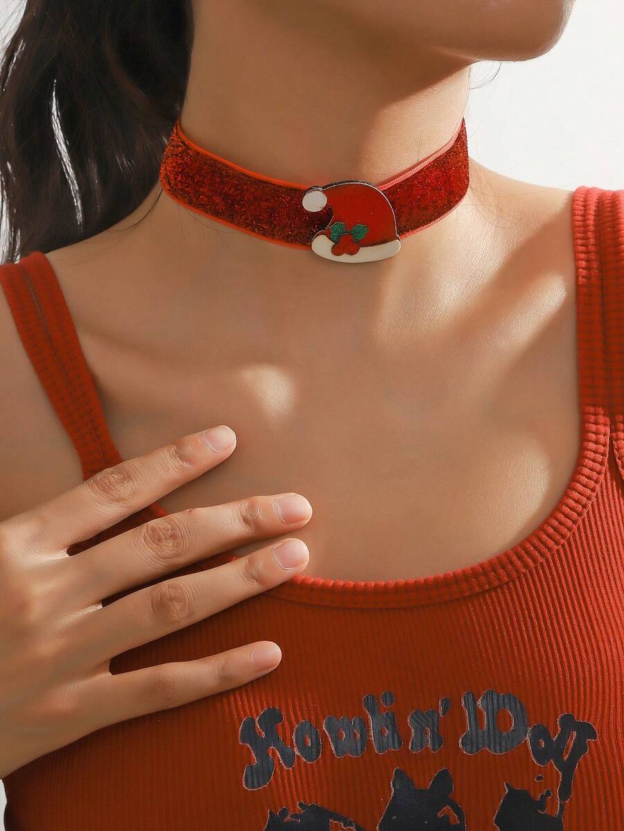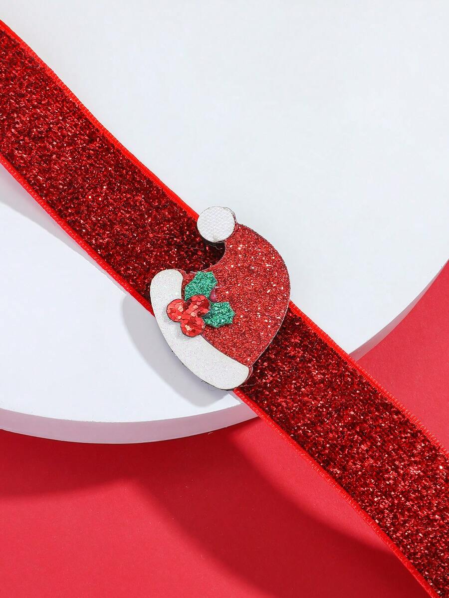 1pc Christmas Cartoon Cute Sparkling Santa Hat Satin Ribbon Necklace