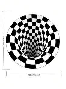 Grunge Punk 1pc Circle 3D Visual Carpet ,Three-Dimensional Illusion Round Floor Mat Black And White Grid Vortex Door Mat Living Room Mat Illusion Door Mat, Party Decor,Home Decor