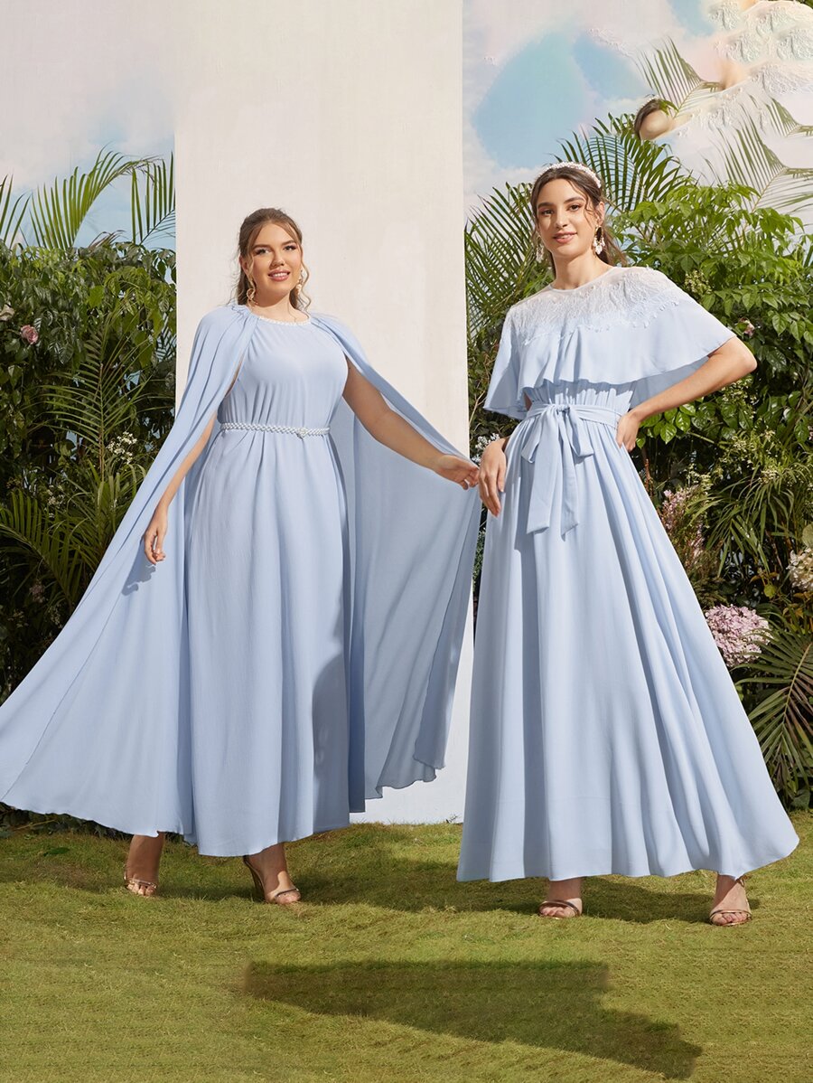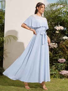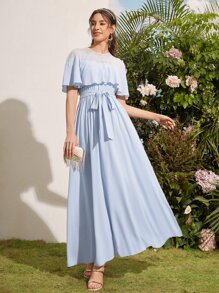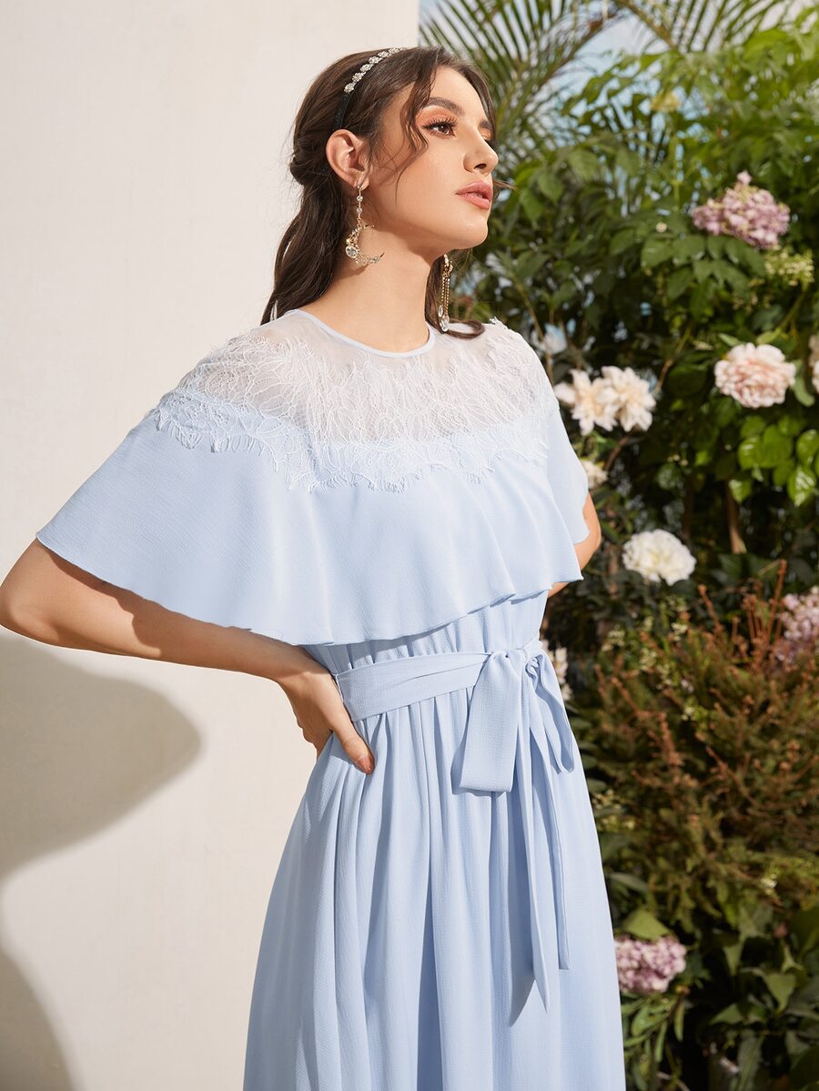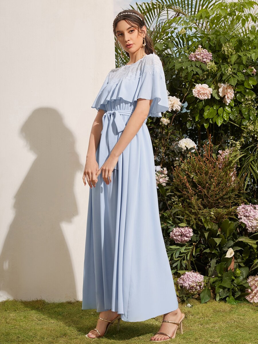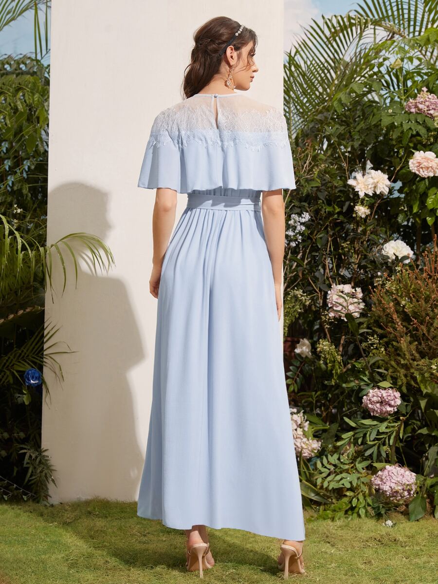 1pc Contrast Lace Belted Bridesmaid Dress