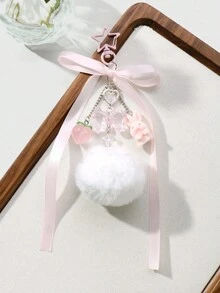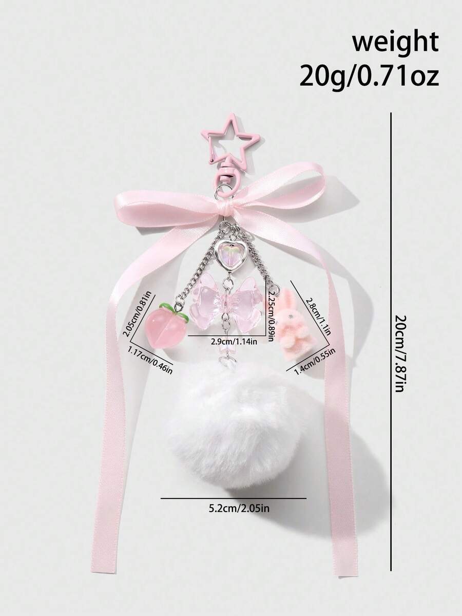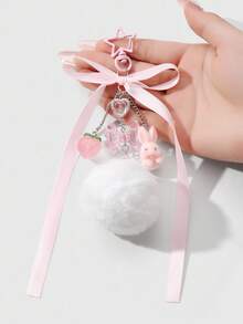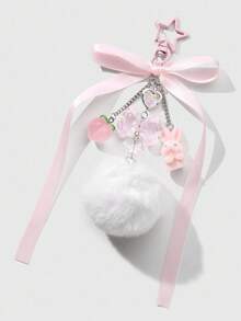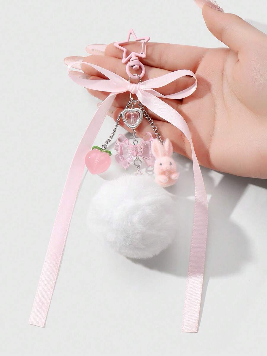 Kawaii 1pc Cute & Fashionable Resin Bow, Peach Flocked Rabbit, Star Pendant Keychain/Bag Charm, Versatile Accessory, Ideal Gift For Women