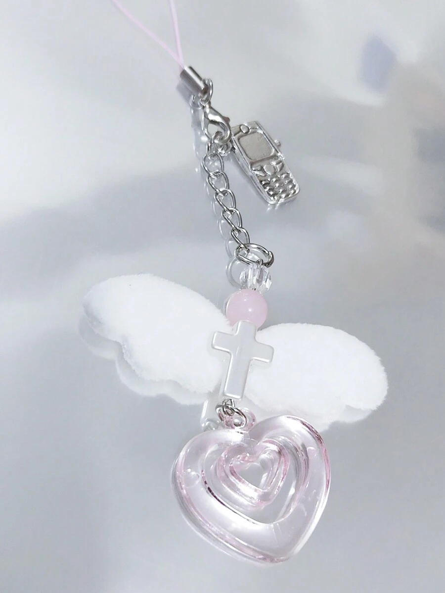 Kawaii 1pc Cute Angel Wings & Heart Beaded Keychain