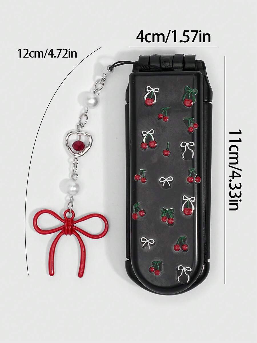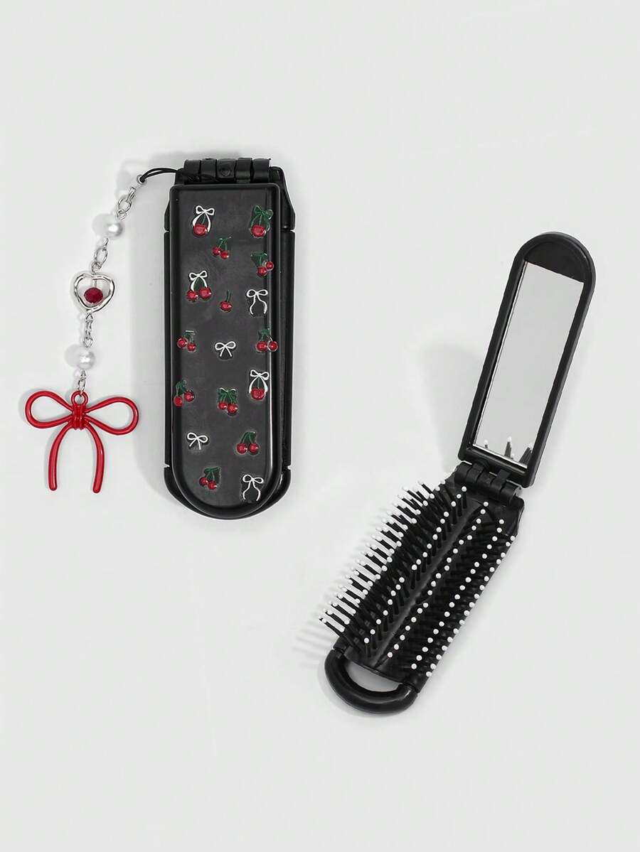 1pc Cute Bow And Cherry Foldable Comb & Mirror Set, Back To School Airbag Comb, DIY Portable Comb Mirror,Kawai's Valentine's Day Or Birthday Gift