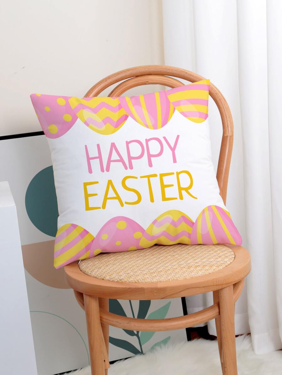 1pc Easter Egg & Slogan Graphic Cushion Cover Without Filler