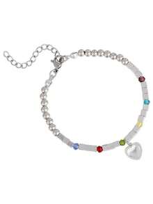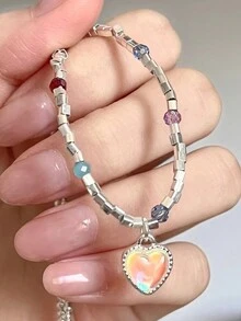 Kawaii Heart Shaped Cubic Zirconia Decorated Link Chain Bracelet