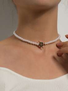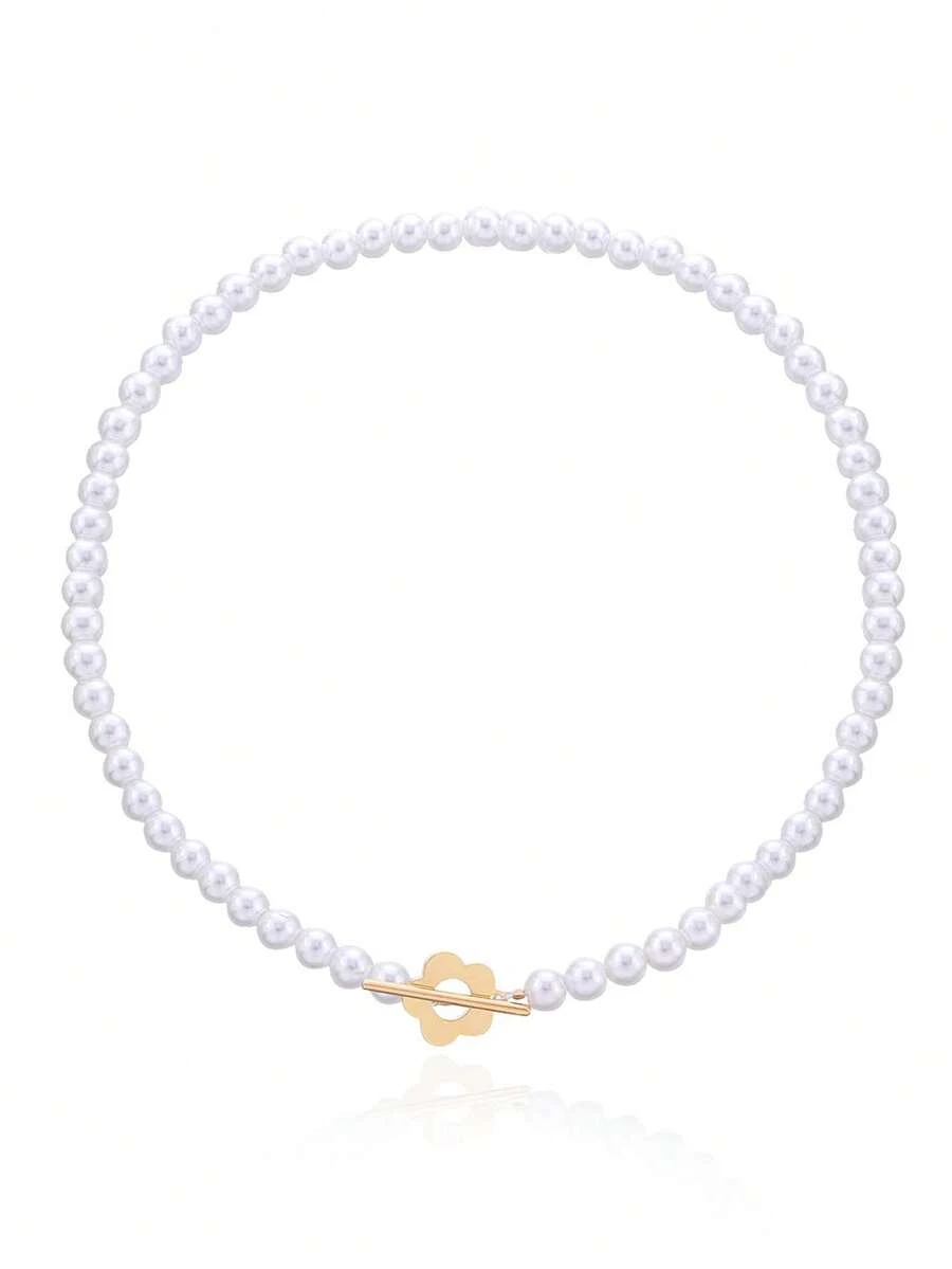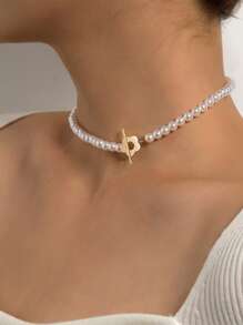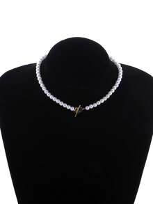 1pc Fashion Iron Alloy Faux Pearl Beaded OT Buckle Necklace For Women For Daily Decoration