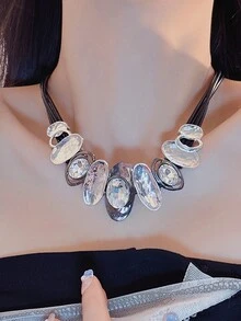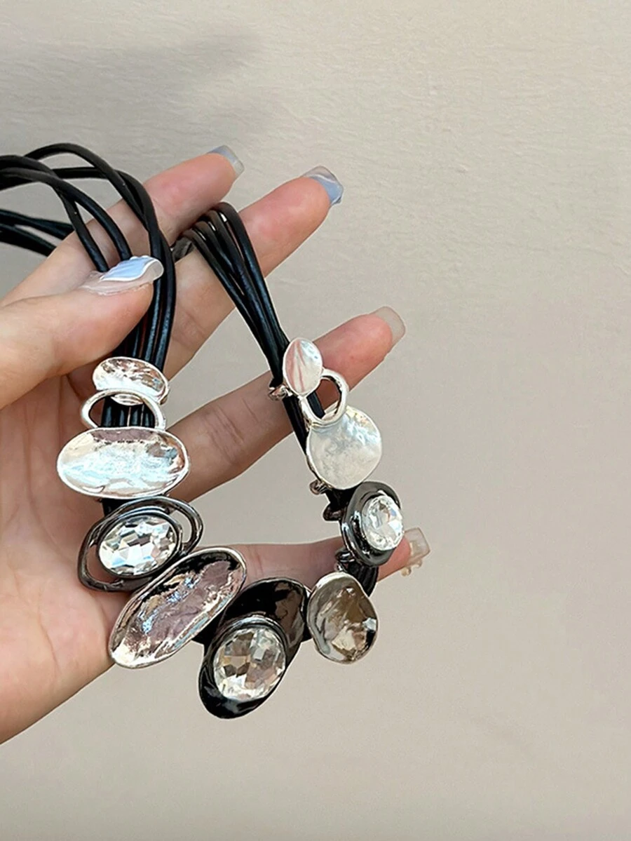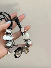 Grunge Punk 1pc Fashion Iron Alloy Geometric Rhinestone Decor Necklace For Women For Daily Decoration