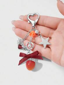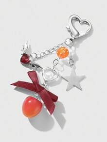 Kawaii 1pc Fashionable, Elegant, And Personalized Silver Chain Star Wings, Crystal Heart, Faux Pearl, Bow, Cherry DIY Keychain, Bag Charm, Suitable For Women, Great Gift For Holidays