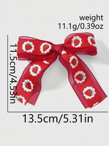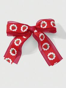 Kawaii 1pc Fashionable Red Mesh Ribbon Printed Strawberry Bow DIY Hair Clip, Elegant & Versatile, Suitable For Women & Girls, Great Gift For Holidays
