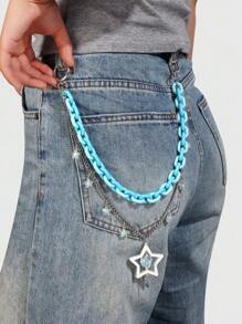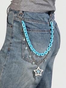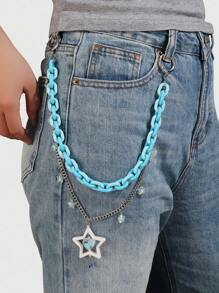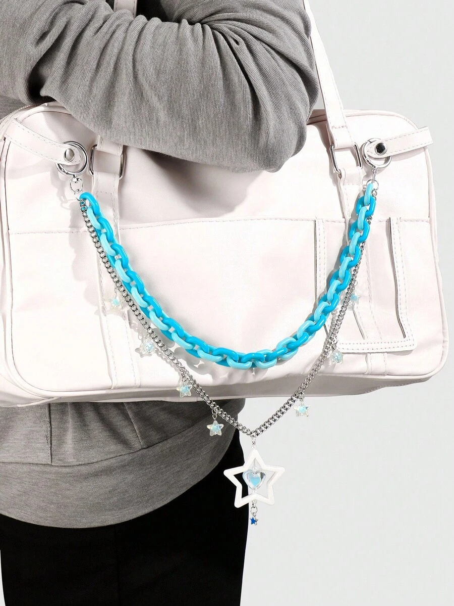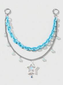 Anime 1pc Fashionable Silver & Blue Acrylic Chain Pendant With Star & Heart Decor, Versatile DIY Accessory For Bags/Clothes, Suitable For Women, Great Gift