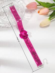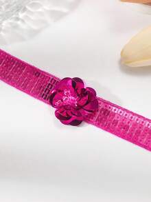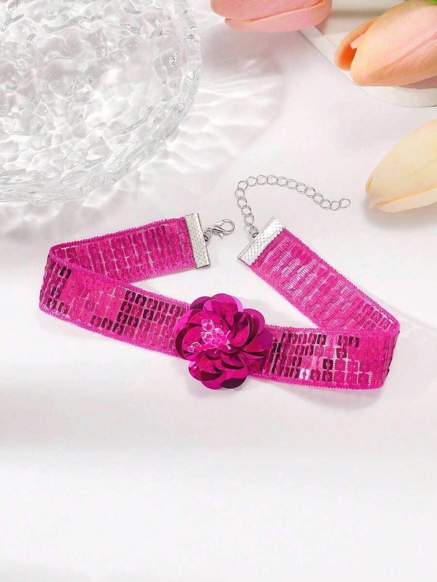 1pc Fashionable Simple Colorful Glitter & Faux Pearl Flower Decor Satin Ribbon Necklace, Suitable For Women's Daily Wear