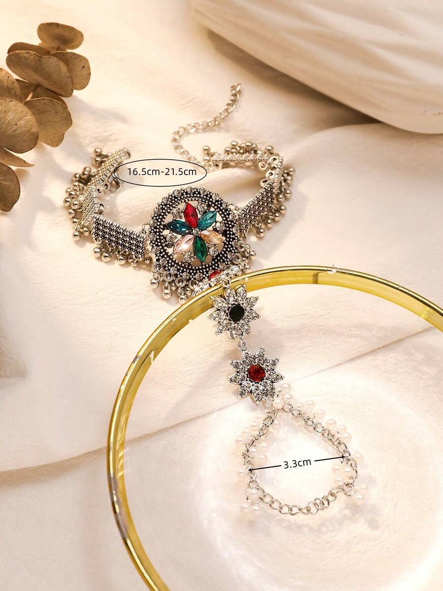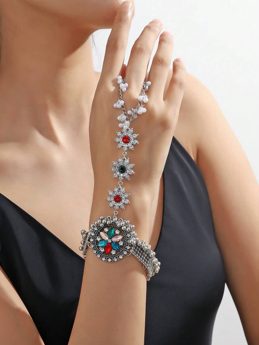 Fairycore 1pc Glamorous Zinc Alloy Rhinestone & Faux Pearl Decor Mitten Bracelet For Women For Dating Gift