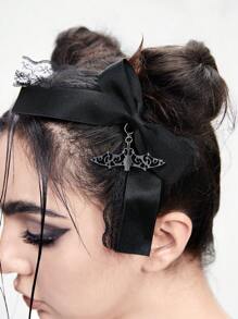 1pc Gothic Black Bat Bow Decor Hair Clip