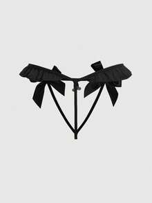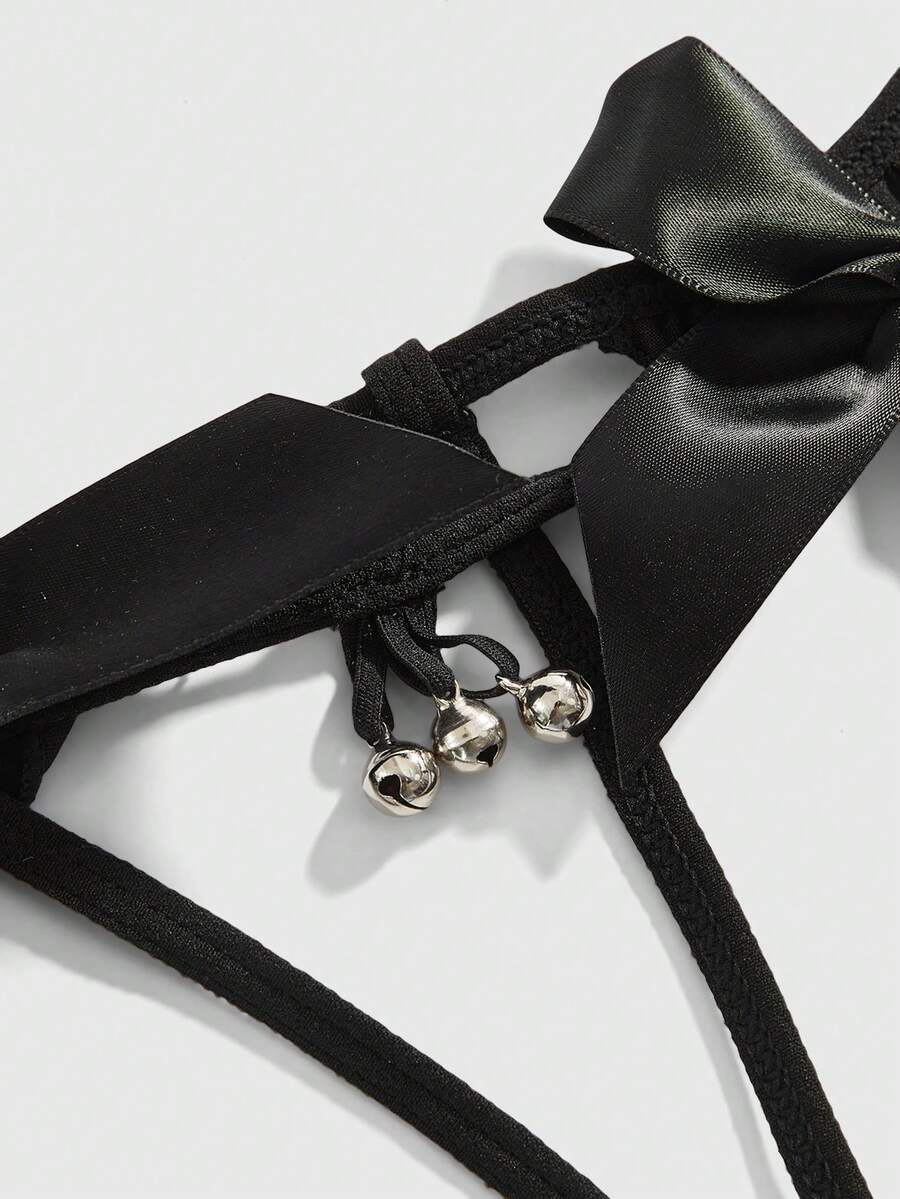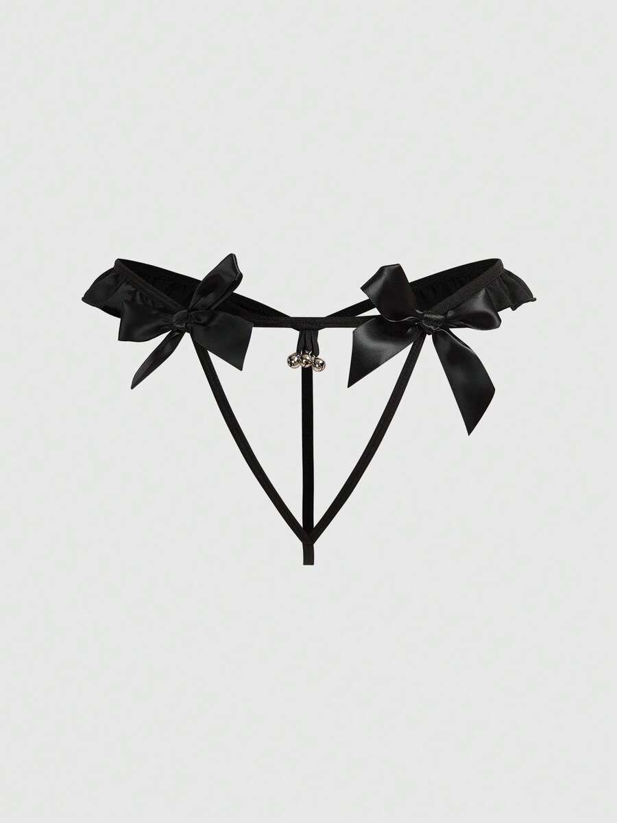 1pc Gothic Metal Bell Bow Tie Crotchless Sexy Panty
