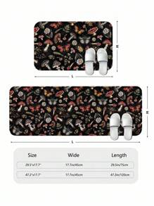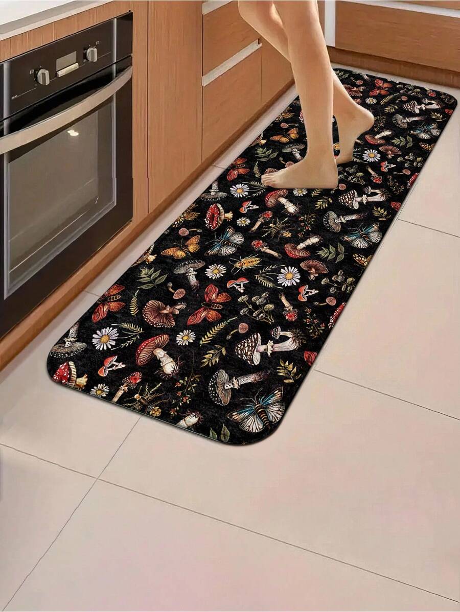 Hippie 1pc Gothic Mushroom Moth Rug - Non-Slip Kitchen Mat With Dark Floral Design, Waterproof Absorbent Floor Pad For Hallway, Bathroom & Altar Decor - Witchy Gothiccore, Dark Academia Home Essentials, Home Decor, Halloween