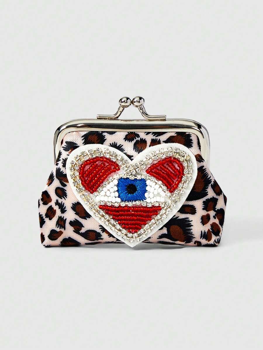 Grunge Punk 1pc Gothic Style Blue Eye & Red Heart Beaded Pu Leather Short Wallet For Women