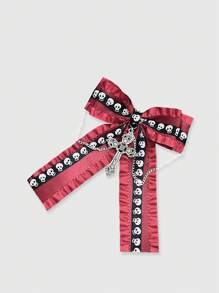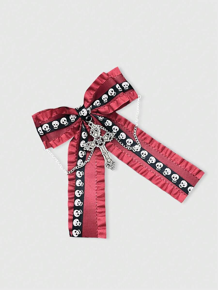 1pc Gothic Style Bow Knot Skull Cross Decor Hair Clip For Women