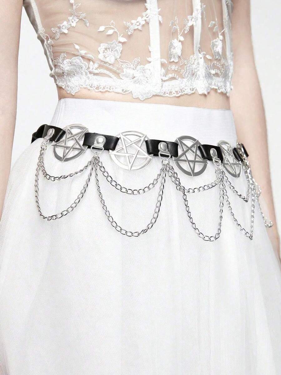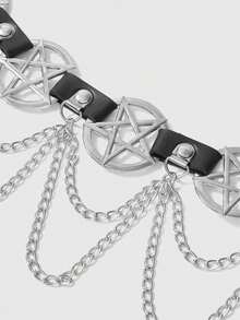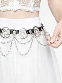 Goth 1pc Ladies' Black Hollow Out Five-Pointed Star Decorated Gothic Style Belt For Dress With Versatile Daily Use, Halloween