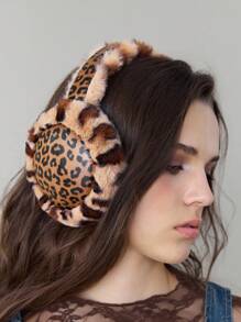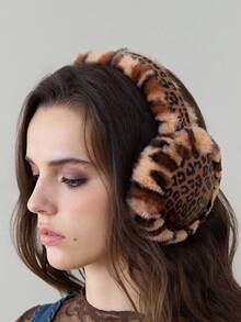 Grunge Punk 1pc Leopard Ear Warmer, Y2K Style Thick Plush Brown Ear Muffs, Foldable Earmuffs For Warm Winter Outings