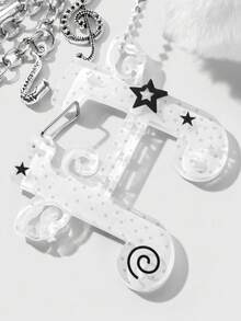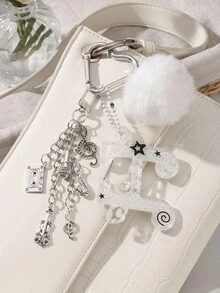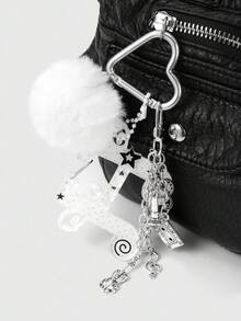 Anime 1pc Minimalist Chic High-End Music Festival White Fuzzy Ball Acrylic Wing Star Note Instrument Mini Tape Horn Cello Microphone Pendant DIY Heart Keychain & Keyring Bag Charm, Suitable For Women, Daily Wear, Holiday Gift