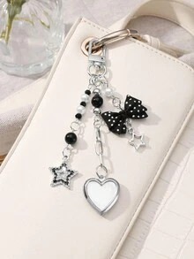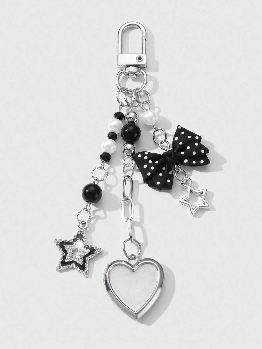 Kawaii 1pc Minimalist Elegant Acrylic Resin Faux Pearl Bowknot Rhinestone Hollow Star Heart Shaped Openable Photo Frame Pendant, Keychain & Bag Charm, Suitable For Women, Gift For Holidays