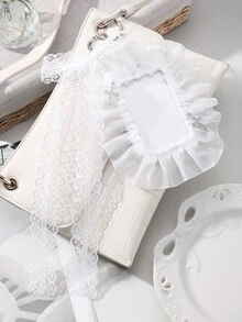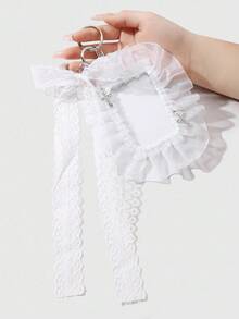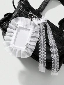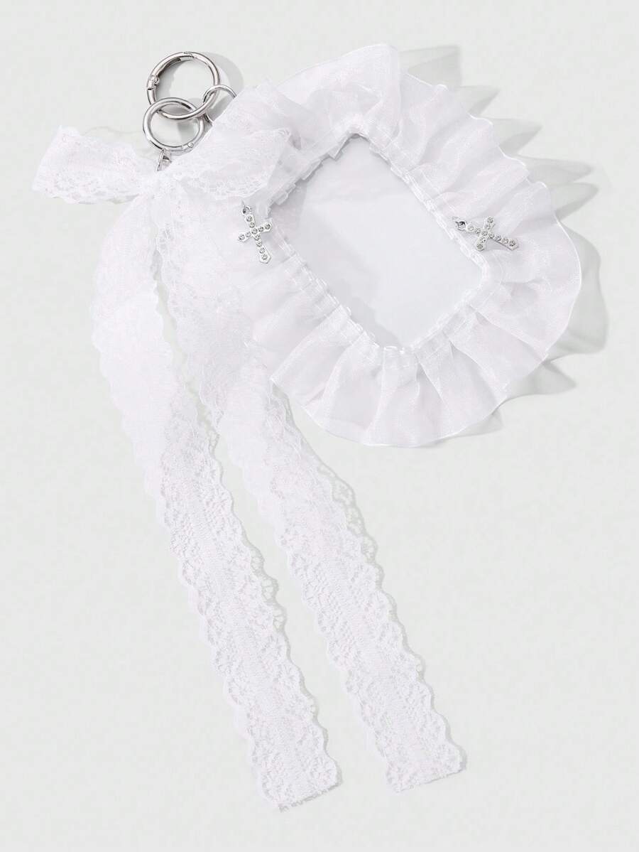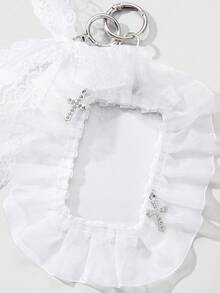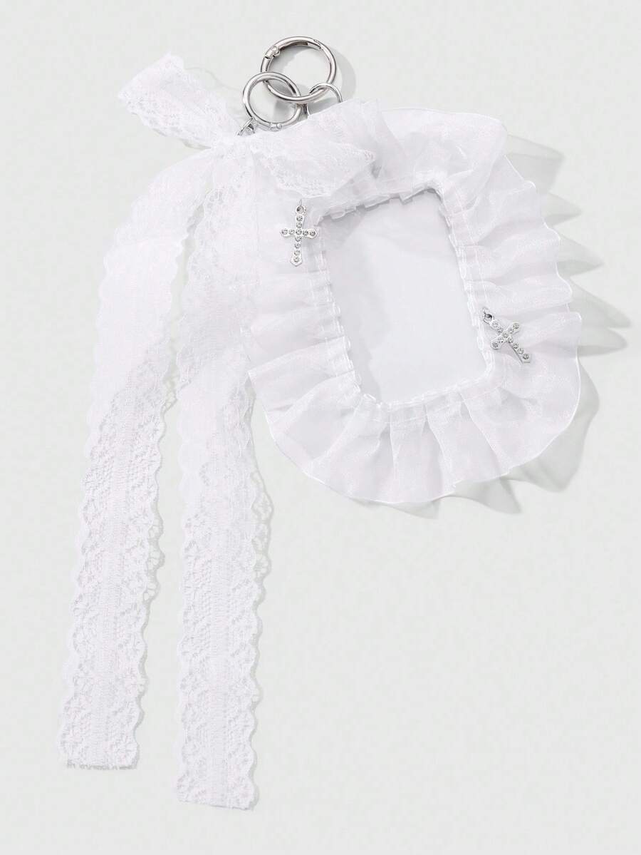 Kawaii 1pc Minimalist Versatile Elegant Lace Bow Mesh Rhinestone Cross Decor Card Holder, Suitable For Office Workers, Students, Daily Wear, Holiday Gift